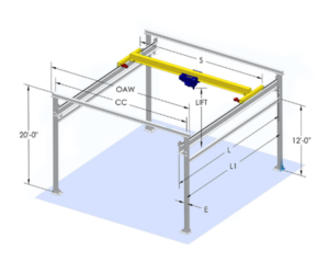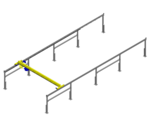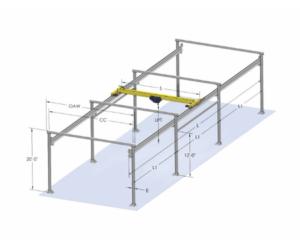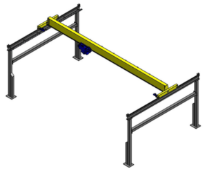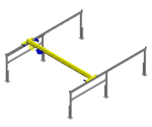 Modular NOMAD® Free Standing Bridge Crane Cells are available in runway lengths of 20, 25 and 30 feet. Multiple cells can be combined for long runways; existing systems can be retrofitted with additional cells.